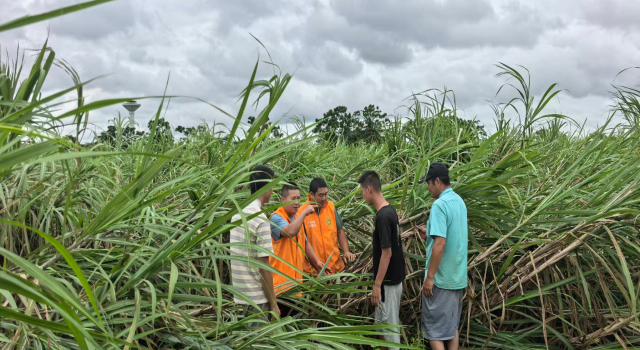 2025年18号台风“桦加沙”于9月24日傍晚在广东省阳江市沿海登陆,随后于24日夜间至25日自东向西穿越雷州半岛。台风中心经过湛江期间,中心附近最大风力达10级,阵风11~12级。9月25日上午8点,国家糖料产业技术体系湛江综合试验站站长苏俊波副研究员带领团队成员,第一时间赶赴遂溪和雷州蔗区评估受灾情况,并开展救灾技术指导。