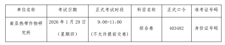中国热带农业科学院南亚热带作物研究所2026年第一批公开招聘(博士岗位)通过资格审查人员名单已经公示,经综合研判,本次笔试采用线上考试方式进行。现将资格初审合格进入笔试人员名单及线上笔试有关事项公告如下: