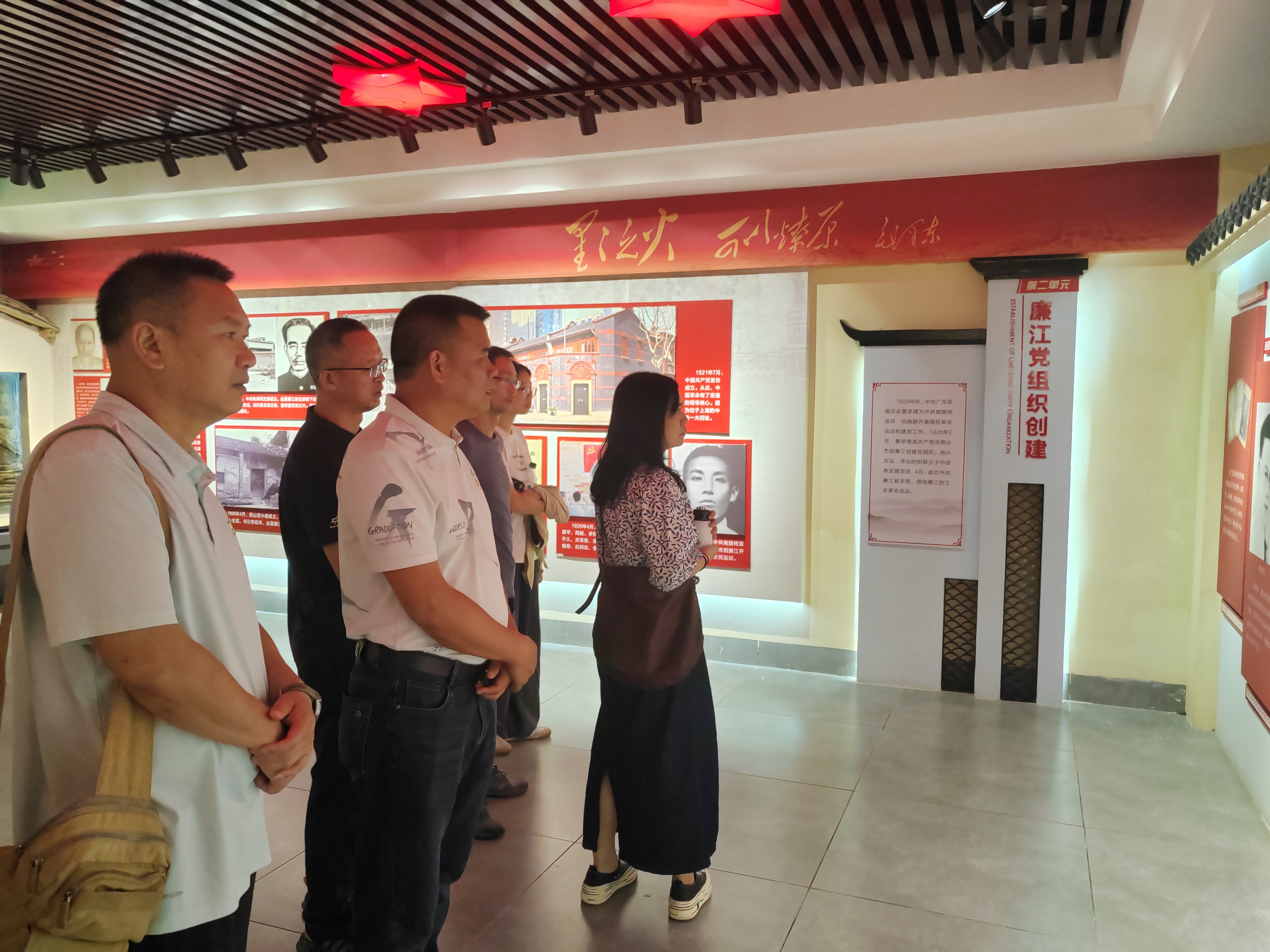 在廉江燕山革命纪念馆,泛黄的照片、斑驳的枪械等一件件革命文物,生动再现了粤桂边区纵队的烽火岁月。同志们凝视着先辈手书的血战日记,深刻体悟“革命理想高于天”的信仰力量。随后来到雷州青年运河纪念馆,通过全景沙盘、开凿工具等实物展示,沉浸式感受“万人会战、肩挑手凿”的运河奇迹。全体党员在运河畔面向党旗重温入党誓词,铿锵誓言与浩渺库水交响,将“创业为民、艰苦奋斗”的青年运河精神熔铸于心。