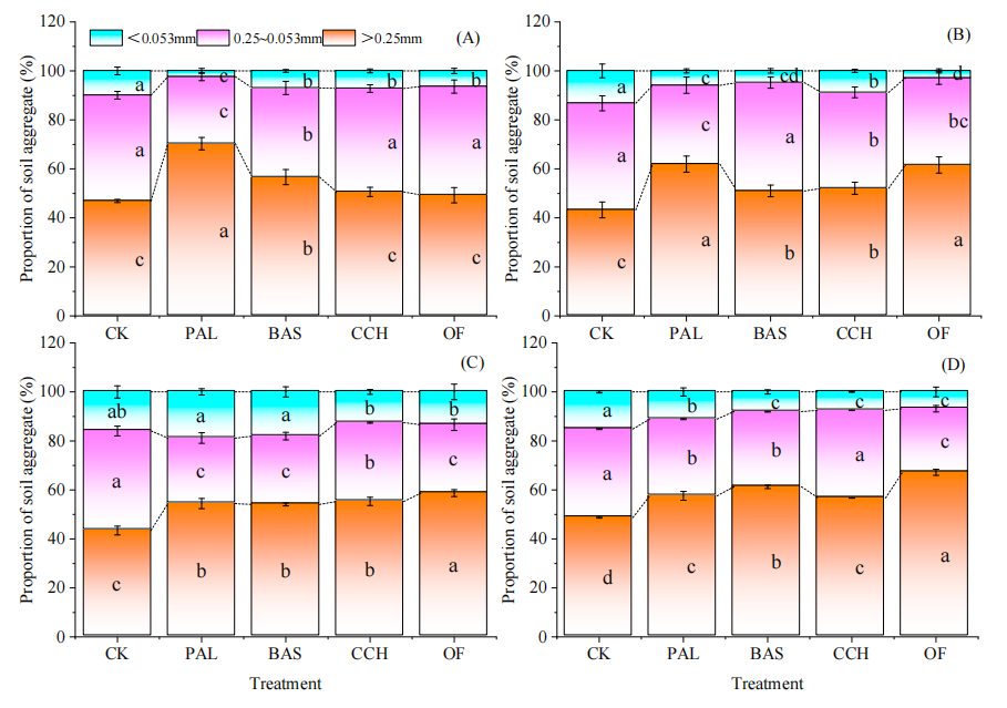 研究团队通过为期3年的尼龙袋培养实验,将菠萝叶、香蕉茎、椰壳和有机肥四种物料分别与土壤混合,在 90 天、180 天、270 天和 1080 天(约 3 年)四个时间点采样,综合分析土壤 ph、电导率、有机酸含量、团聚体结构、碳氮分布及微生物群落等关键指标。系统揭示了菠萝叶、香蕉茎、椰壳和有机肥四种热带典型有机物料还田对砖红壤理化性质及微生物群落结构的影响,为热带地区土壤改良和可持续农业发展提供了重要科学依据。